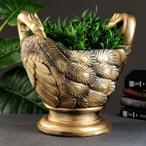Фигурное кашпо "Павлины" бронза/золото, 35х35х25см, На газон