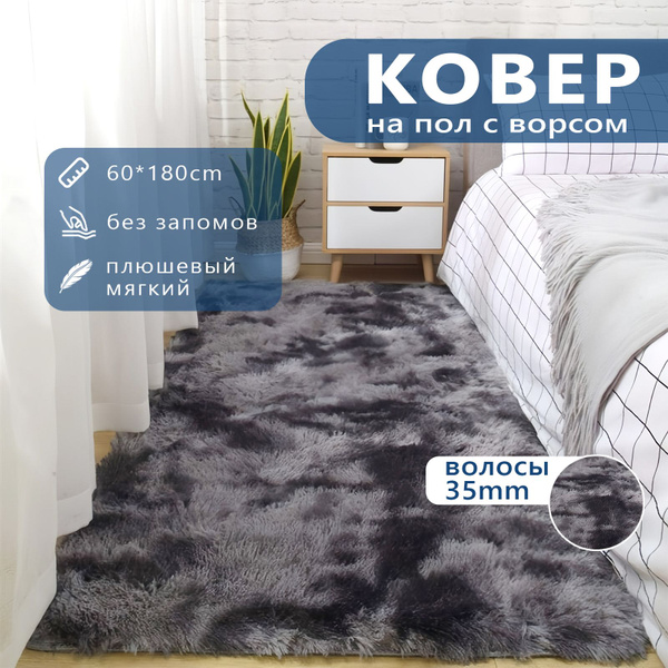 Коврик напольный с длинным и высоким ворсом для дома, размер 60х120 см