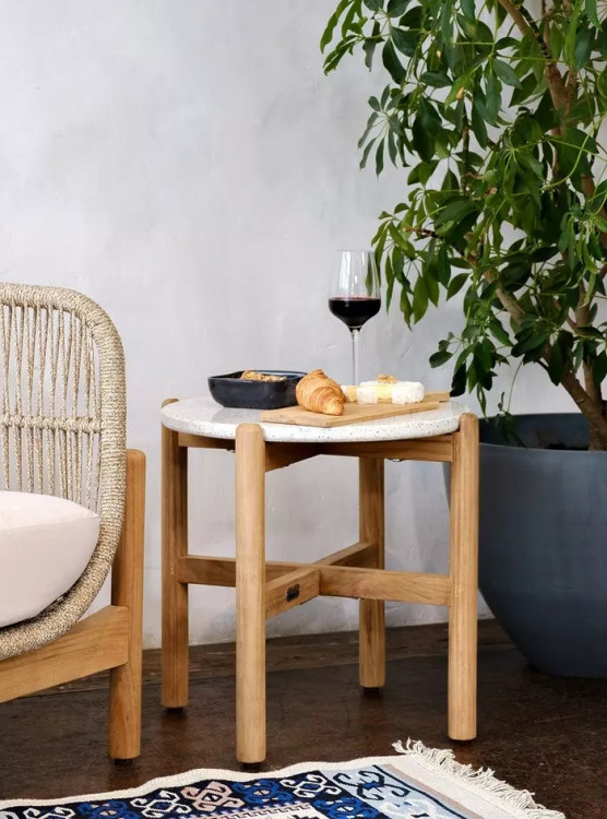 Стол круглый раздвижной из тика бежевый So'home купить в интернет