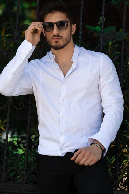 Мужская рубашка слим фит с длинным рукавом и классическим воротником