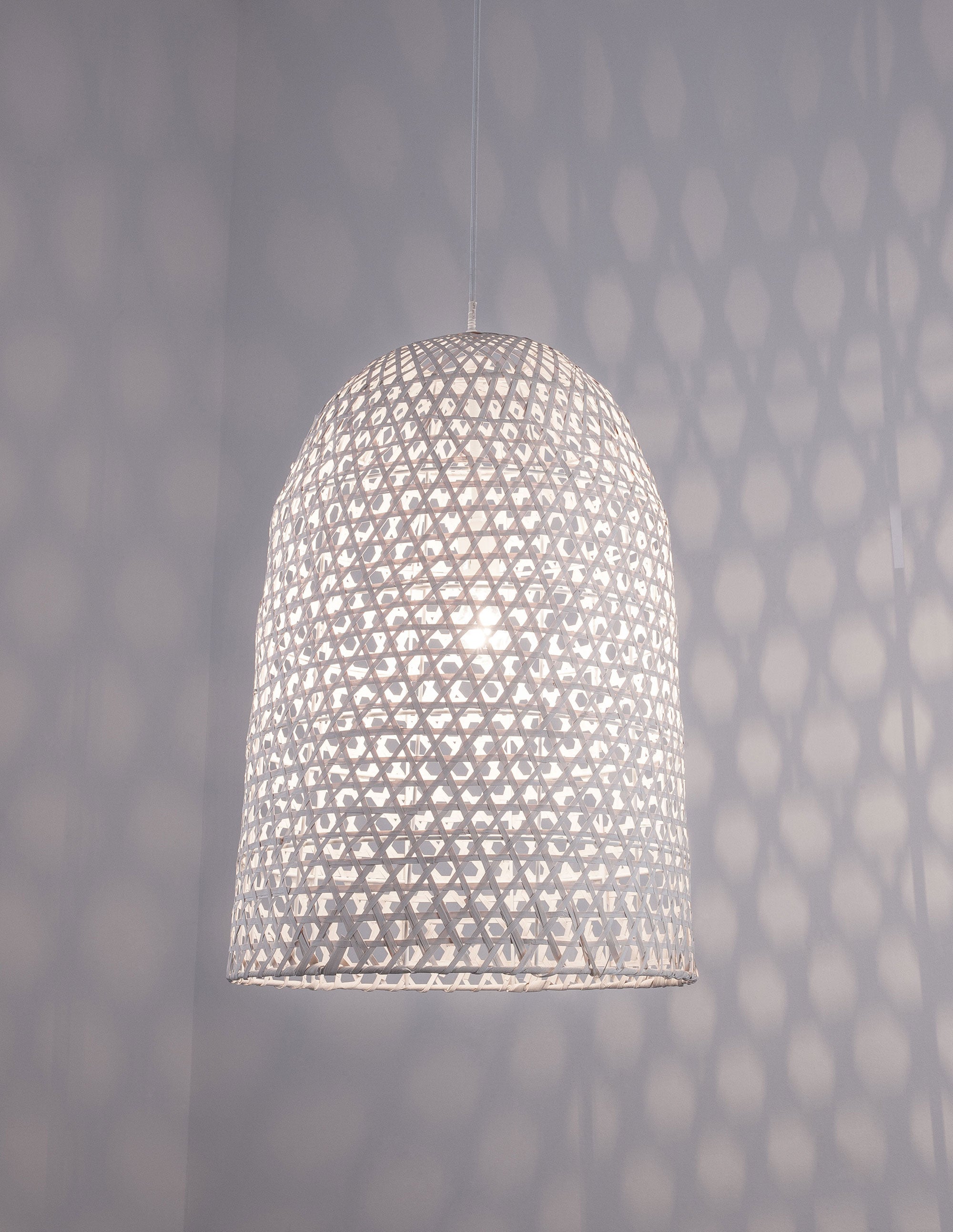 Бохо висяща лампа от бял бамбук Aurora