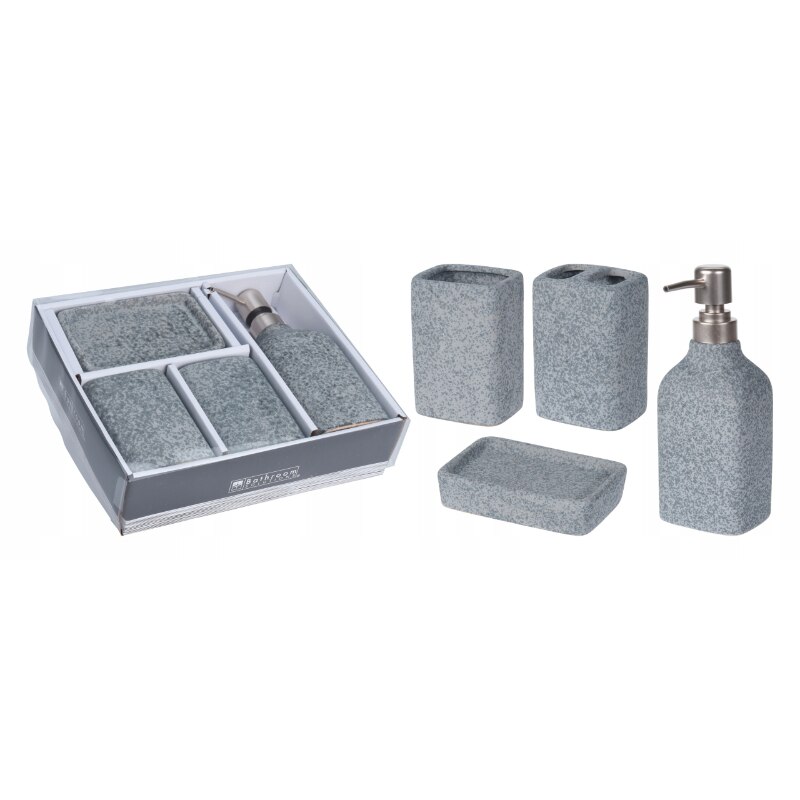 Комплект от 4 аксесоара за баня, Керамика, Сив